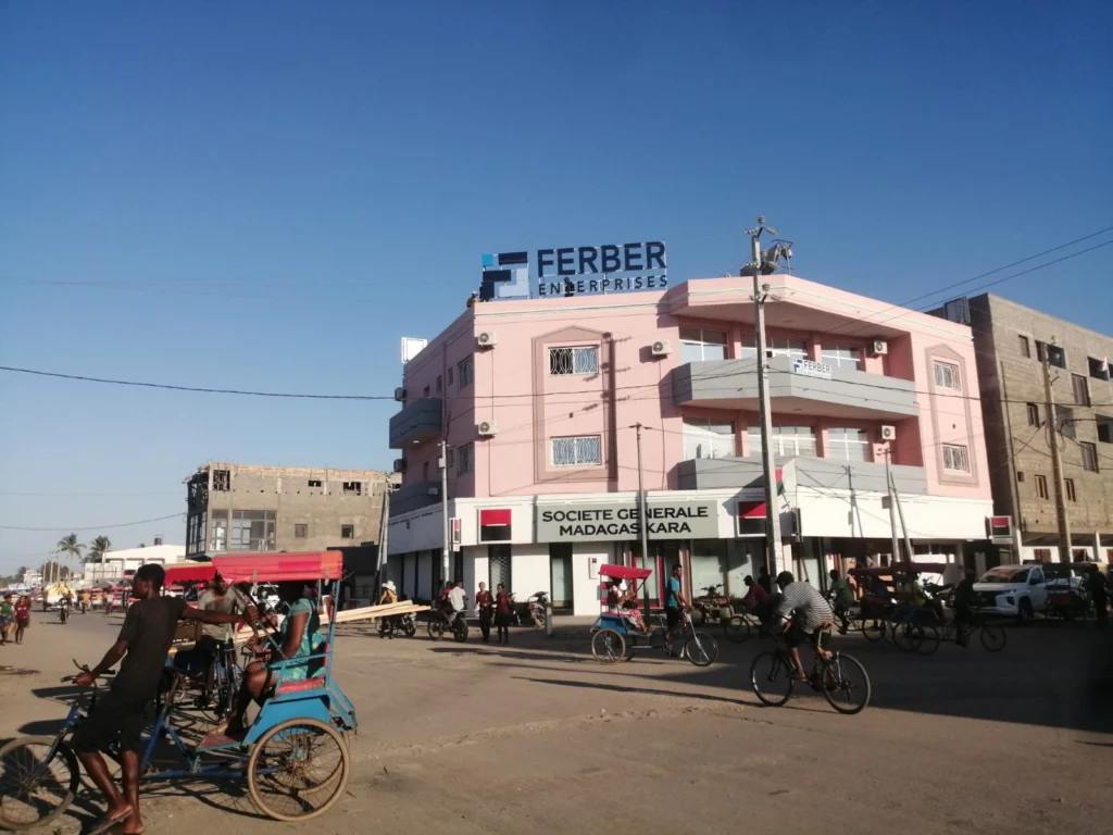 Situado no cruzamento da Monja Jaona, o novo escritório goza de uma localização privilegiada em Sanfily, Tuléar. Este posicionamento estratégico proporciona fácil acessibilidade e conveniência tanto para os funcionários como para os clientes. A localização central também melhora a conetividade com outros distritos comerciais e centros de transporte importantes, reforçando ainda mais a presença da Ferber Enterprises na região.